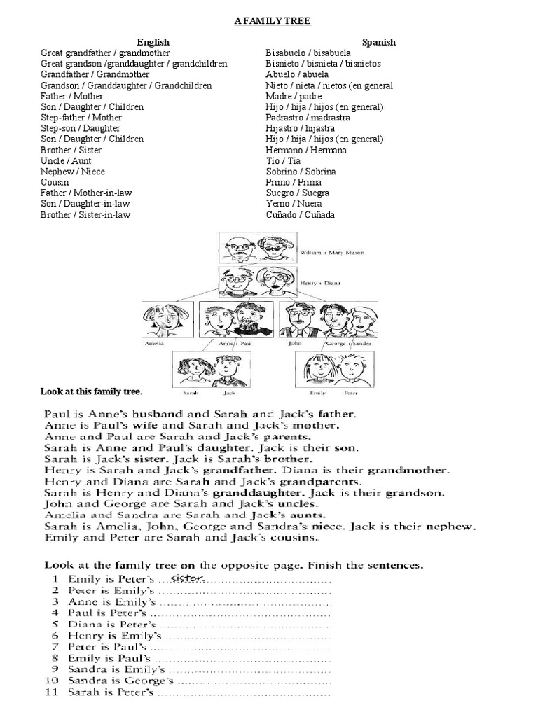 Arrange them on the tree to your liking, and then glue them on. Once kids have a family tree in front of them, try activities like these to teach family members in spanish. A set of lovely eal family tree template worksheets with spanish text, useful for lessons on the family, relatives and the personal a great activity to test students' vocabulary for the topic of families in spanish language learning.
