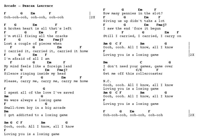 Until we realize, mostly when it's too late, that like a small town boy in a big arcade, we've been addicted to a losing game. And when it's gone, all we do is hope for it to ever come back. Ooh, ooh all i know, all i know.
